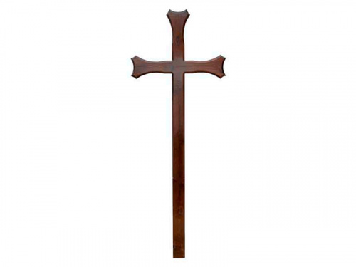 Гроб модель Крест - имеет четырехгранную форму, изготовлен из сосны, для обивки используются шелк, атлас или бархат, ткань представлена в различной цветовой гамме. Крышка обита гофрированной тканью на выбор, верхняя часть крышки дополнена комбинацией тканей, собранной в форме креста, и шелковым рюшем в тон основы. Нижняя часть гроба обита гладкой тканью, украшена золотой тесьмой и шелковым рюшем в тон основы. Дополнен французским крестом. С внутренней стороны гроб обтянут белой шелковой тканью. Гроб может быть дополнен ручками, постелью, крестом.